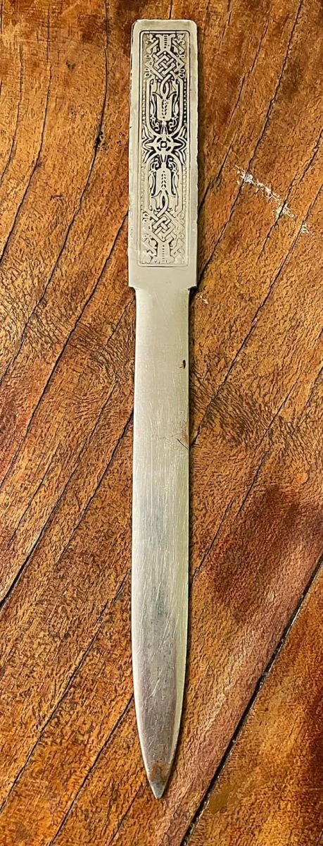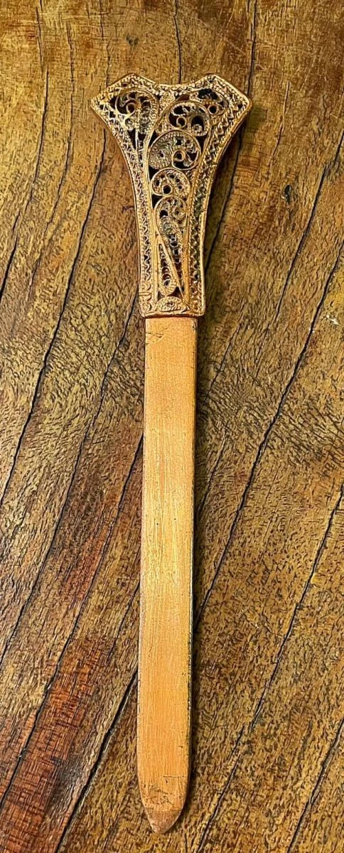 Χαρτοκόπτης, αντίκα τέχνη φιλιγκραν, χάλκινος 17cm, δώρο ο διαφημιστικός vintage, ΒΙΑΜΥΛ 22,5cm