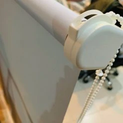 Στόρια από γερμανικό πιστοποιημένο ανθεκτικό και χονδρό ύφασμα, γκρι/γαλάζιο ανοικτό, που μπλοκάρουν το φως, αγορασμένα προ διετίας από γνωστή βιοτεχνία κόστους 1280ε. Έχουν χρησιμοποιηθεί με ιδιαίτερη προσοχή σε γραφείο χωρίς καπνό, κατοικίδια, υγρασία.