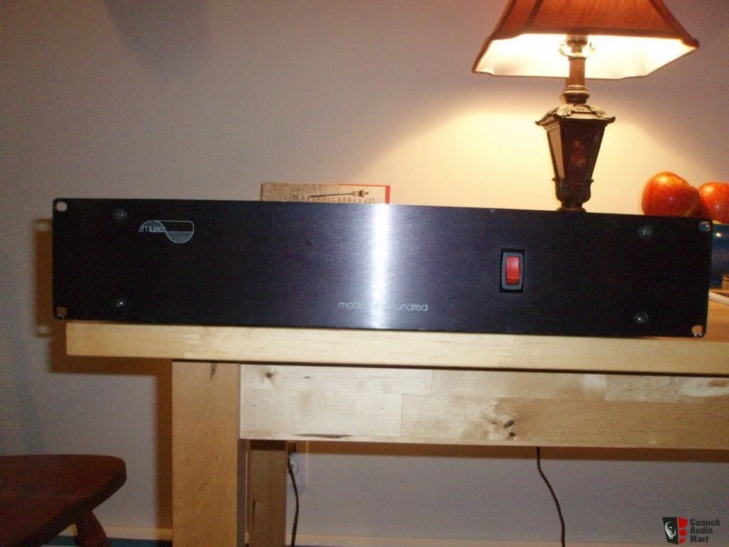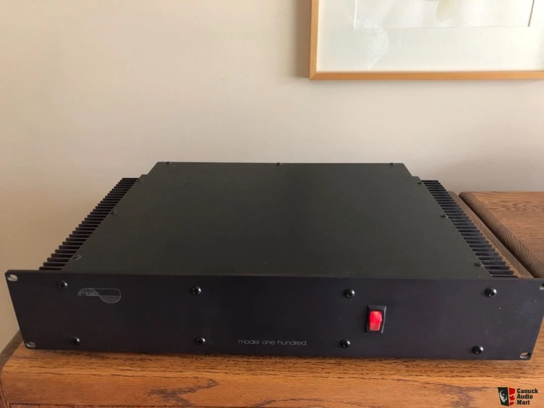 Πωλειται τελικος ενισχυτης MUSE ONE HUNDRED. εδω παραθετω τα χαρακτηριστικα του.Description: Solid-state stereo power amplifier. Power output: 100Wpc, 20dBW (8 ohms), 200Wpc, 20dBW (4 ohms). VOltage gain: 30dB. Sensitivity: 890mV. Absolute polarity: non-inverting. Input impedance: 51k ohms. Distortion: less than 0.5% THD+noise. Frequency response: –3dB at 13Hz and 200kHz. Output impedance: 0.6 ohms, 20Hz–20kHz. Output current capability: 45A maximum, peak–peak into 0.1 ohm. Power consumption: 90W idle, 600W maximum (limited by 5A line fuse).
